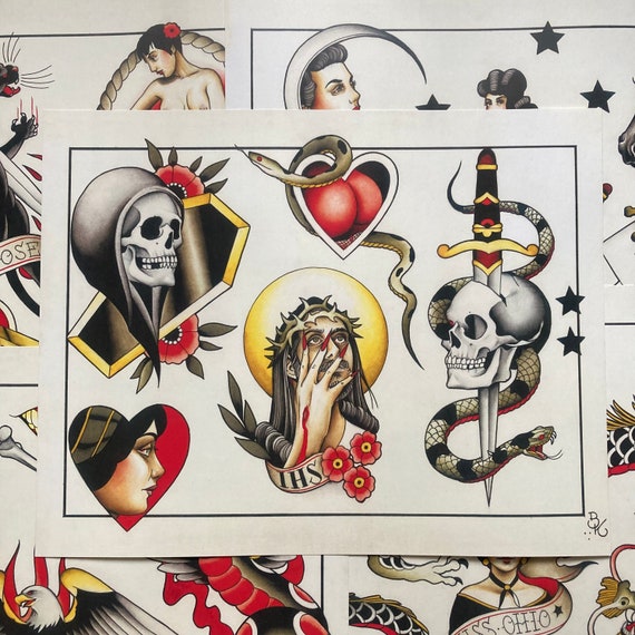Tattoo Flash Set 57 By Brian Kelly 10 Sheets Etsy Uk